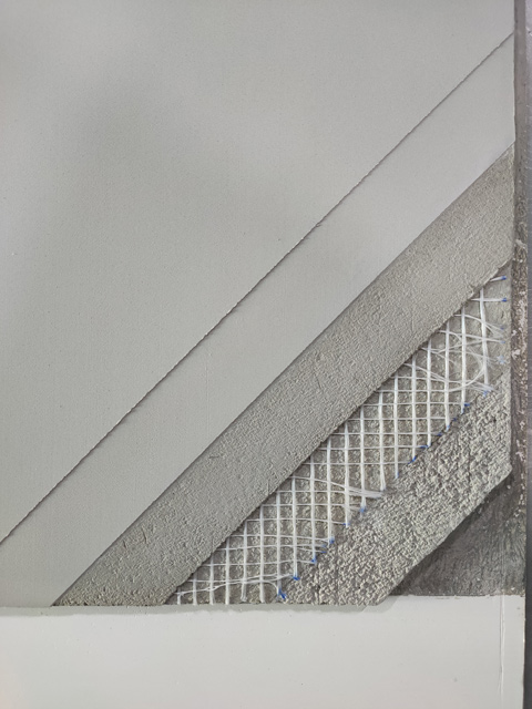 4、在第三步完成的基礎(chǔ)上涂刷抗裂砂漿,等其干燥后再掛抗堿網(wǎng)格布,最后再格布的基礎(chǔ)上涂刷一遍抗裂砂漿即可。