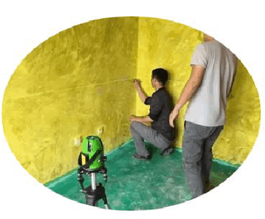 外行看裝修圖時(shí)可能會(huì)有這樣的疑問(wèn),?墻上黃色的、地上綠色的是什么?是涂的防水嗎?其實(shí)這就是墻固和地固,墻固一般是黃色的,地固是綠色的,藍(lán)色紅色也有。