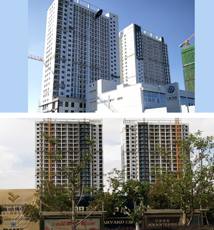 開發(fā)商和施工方都是外省來昆投資的企業(yè),經(jīng)過對市場的了解對比,通過我公司網(wǎng)站留下的聯(lián)系方式聯(lián)系上我們,并到廠實(shí)地考察送樣品測試,最終達(dá)成了供貨協(xié)議。整個建筑的內(nèi)外墻膩?zhàn)?、抗堿封閉底漆、真石漆、罩面清漆、內(nèi)墻乳膠漆均有綠舟砂漿公司提供。
