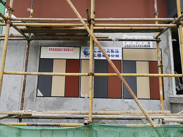 潤(rùn)城五區(qū)、八區(qū)成功的被云南海天裝飾工程有限公司中標(biāo)。通過(guò)與我們綠飾舟建材有限公司的技術(shù)人員溝通,經(jīng)過(guò)現(xiàn)場(chǎng)打樣、比對(duì),這兩個(gè)標(biāo)段就采用了綠舟水泥基2號(hào)粗膩?zhàn)?,批刮兩遍以后再噴真石漆?br/>