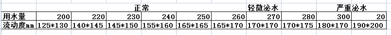 2、不同用水量對(duì)比強(qiáng)度和泌水情況、現(xiàn)場(chǎng)觀察。