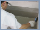 1.準(zhǔn)備750px的網(wǎng)格布 2. 涂刷一道 3.將網(wǎng)格部貼于陰角部分 4.在網(wǎng)格布上涂刷第二道
