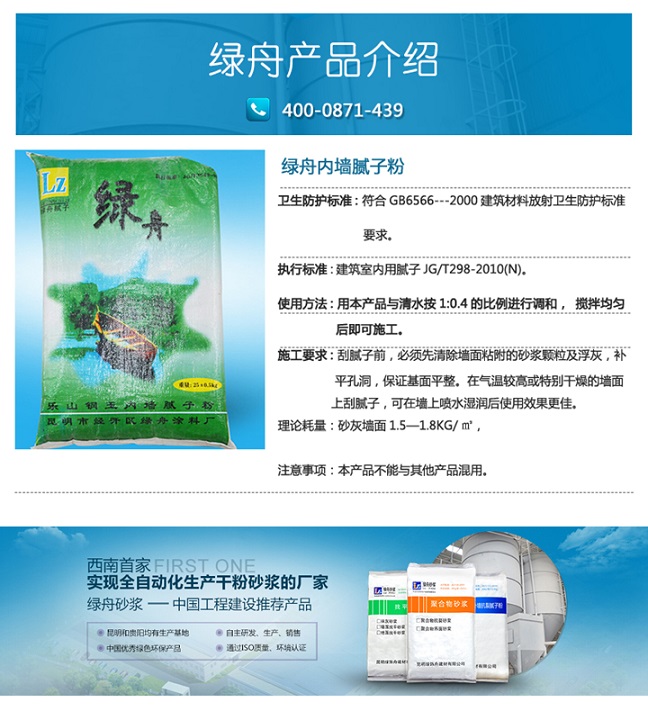 綠舟砂漿的中性內(nèi)墻膩?zhàn)舆m用于家裝裝修,現(xiàn)代家裝公司做乳膠漆基層特制產(chǎn)品,選用天然材料,PH值7-8,易施工,不傷手,不嗆鼻。可調(diào)色,能有效的防止工人在漆上偷工減料。