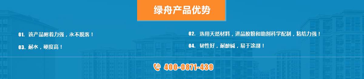 外墻面積15萬平米,采用綠舟外墻膩子粉(標準型)...